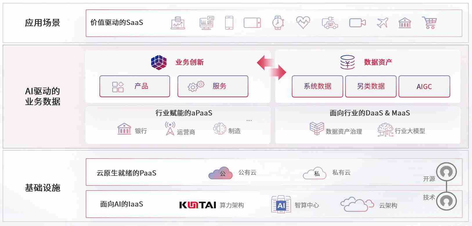 数字时代,,,,围绕企业数字化转型的关键要素,,,意昂4数码开创性的提出数云融合战略和技术体系框架,,,,着力在云原生、、、、数字原生、、、AI原生和信创产业上架构产品和服务能力,,,,为处在不同数字化转型阶段的快消零售、、汽车、、、、金融、、、、医疗、、、政企、、、教育、、运营商等行业客户提供泛在的敏捷IT能力和融合的数据驱动能力,,,构建跨界融合创新的数字业务场景和新业务模式,,,助力企业级客户建立面向未来的核心能力和竞争优势,,,全面推动社会的数字化、、智能化转型升级。。