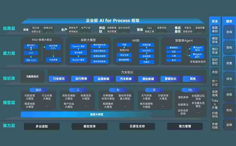 意昂4问学智车解决方案是一套基于AI技术的汽车行业智能化系统,,,,覆盖从底层算力到顶层AI应用的全栈方案。。方案由算力层、、、、模型层和应用层组成:算力层,,,方案支持多种一体机配置,,具备云端灵活部署、、多云适配以及动态优化计算资源的能力;模型层,,,,意昂4问学平台版提供了企业级AI应用一站式构建与管理平台,,,支持基于后训练强化技术的汽车企业专属模型的训练、、评测和运营;应用层,,意昂4问学DeepSeek版提供包括超级员工、、、智能招采、、智能营销、、智能客服、、AI for BI等一系列解决方案,,可助力汽车行业实现数字化转型,,,,让管理更智能、、、响应更敏捷。。